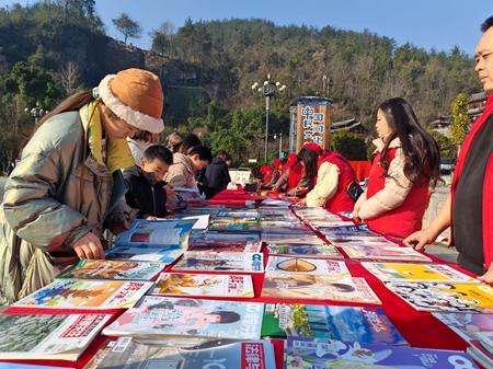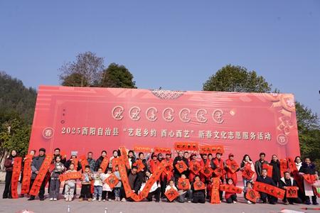 为认真学习宣传贯彻党的二十大精神,传承中华传统文化,1月16日,酉阳县图书馆在桃花源广场开展“欢欢喜喜过大年”—2025酉阳自治县“艺起乡约·酉心酉艺”新春文化志愿服务活动,以送春联、送图书的活动形式,为广大市民送去新春祝福,营造欢乐祥和的节日氛围。